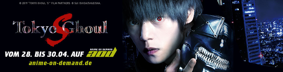 Von Dienstag, 28. April um 20 Uhr bis Donnerstag, 30. April bis 20 Uhr kann für 48 Stunden ein Sonderticket für die Streaming-Plattform Anime on Demand (www.anime-on-demand.de) für den Preis von 9,95 Euro erworben werden, um den Film „Tokyo Ghoul S“ dann bequem zu Hause schauen zu können. Dieses Kino-Event wird dem Streaming-Angebot für den Event-Zeitraum exklusiv zugefügt.