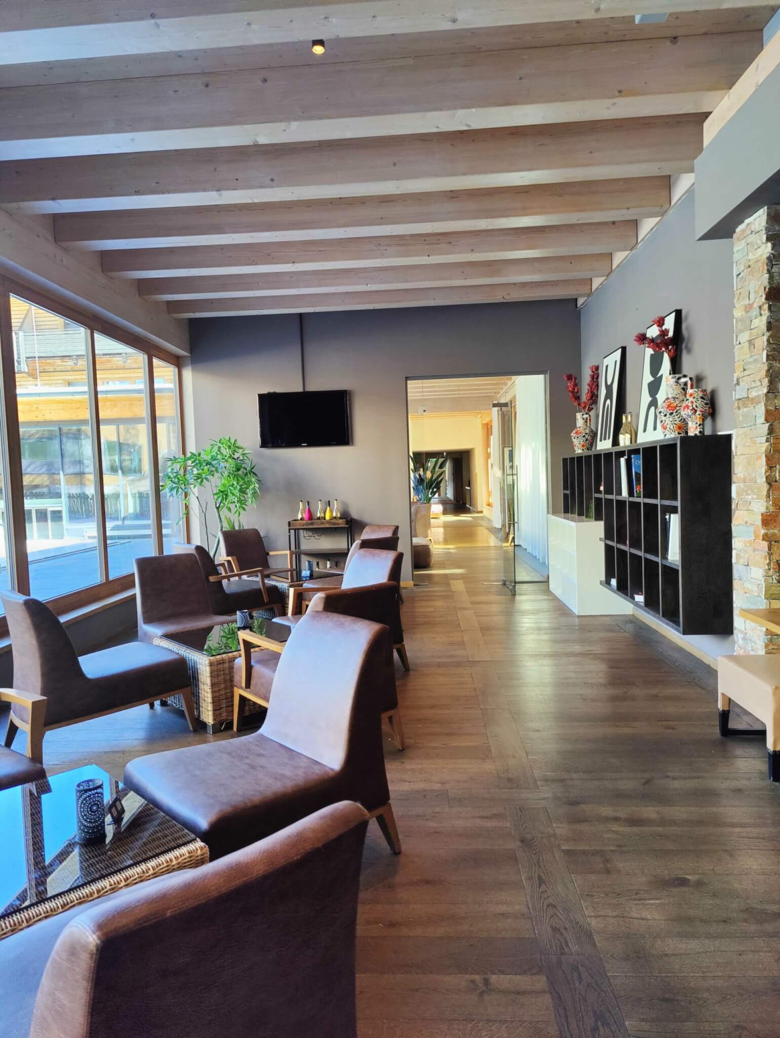 Von Tröpolach aus geht es über eine Serpentienstraße ins hochgelegene Nassfeld, wo sich auf rund 1.500m Seehöhe das Falkensteiner Hotel Sonnenalpe befindet. Gut beschildert, erreichen wir das Ziel ohne Umwege und parken kurz vor dem Eingang, um Einzuchecken und das Gepäck auszuladen. Alle sind sehr entspannt und zuvorkommend. Bei der Rezeption wird uns erklärt, dass wir wahlweise das Auto hinter dem Hotel auf dem kostenlosen Parkplatz abstellen, aber auch einen Platz in der Tiefgarage gegen Bezahlung haben können. Also bringe ich das Gepäck aufs Zimmer und stelle danach das Auto ab. Der rustikale, traditionelle und zugleich moderne Stil gefällt mir sehr gut und sorgt gleich für einen gewissen Wohlfühl- und Entspannungsfaktor. Check-in ist übrigens um 15:00 Uhr.