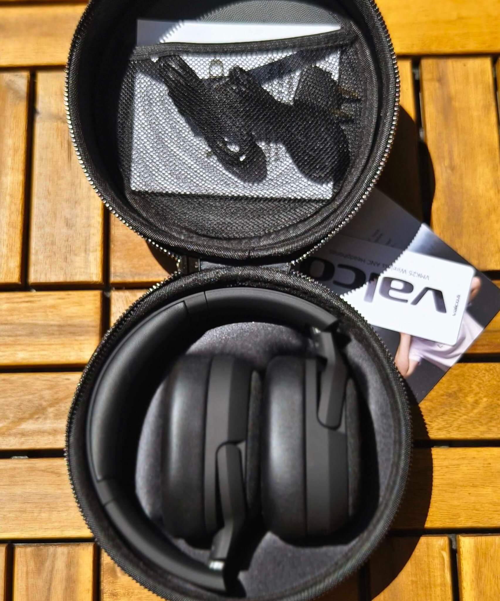 Bei der Bedienung verlässt man sich auf ein paar wenige Buttons, die an den Hörermuscheln zu sehen sind. Es gibt einen Lautstärkenregler, den ANC- sowie einen Aus- und Einschaltknopf. Ich habe mir das Feedback bei meinem VMK20 Test zu Herzen genommen und dieses Mal die Bedienungsanleitung aufmerksam gelesen. Ich empfehle allen Käufer:innen das ebenfalls zu tun. Nicht weil, ihr es müsst, damit ihr den Hörer verwenden könnt, sondern viel mehr weil sie sehr valco-typisch verfasst ist. Zurzück zum Punkt: Ihr könnt – auch wenn es etwas unintuitiv ist, mit den vorhanden Knöpfen auch einen Song überspringen oder mal einen Song pausieren.