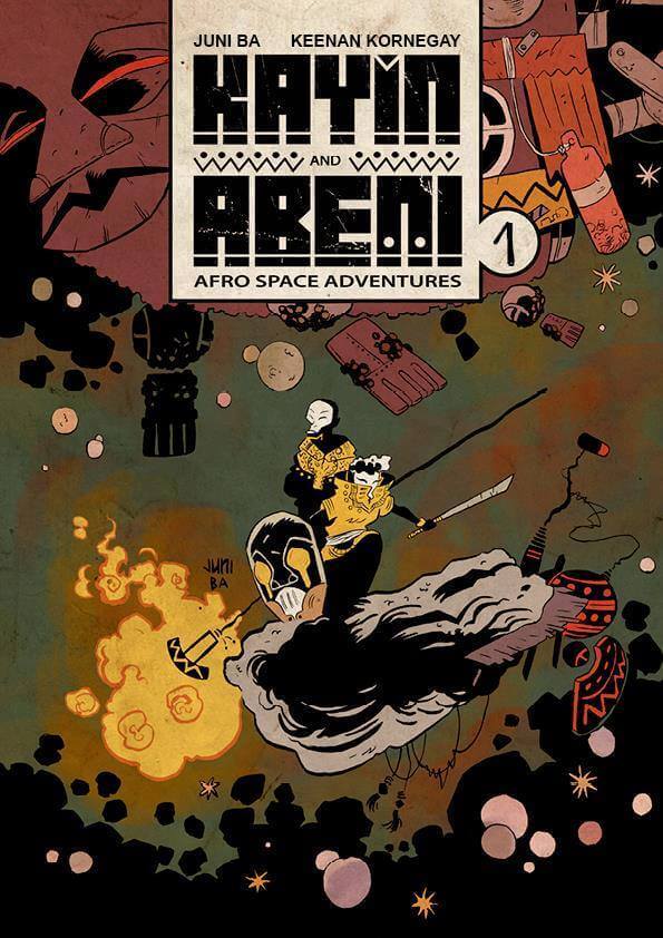 Nun besteht Afrika natürlich aus vielen Ländern mit jeweils unterschiedlicher Geschichte, kulturellem Hintergrund und damit verschiedenster Ästhetik. Demnach verfügen alle von Kugali’s Produktionen über einzigartigen Stil und eigene Themen. Ein Beispiel mit besonders markantem Look ist der Science Fiction Comic Kayin and Abeni von Juni Ba, in dem jegliche Technologie, Waffen und Geräte von West-Afrikanischer Ästhetik inspiriert sind.