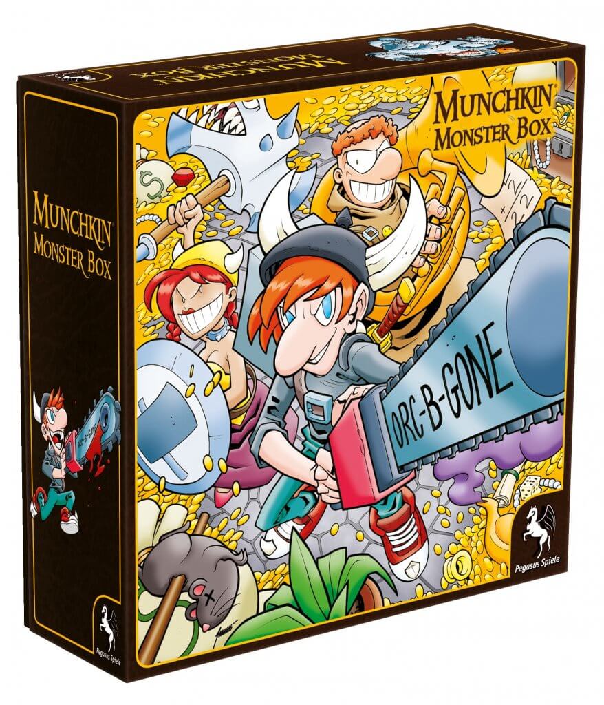 Platz für diese neuen und viele weitere Karten bietet die Munchkin Monsterbox, die es in drei verschiedenen Designs von John Kovalic, Edwing Huang oder Ian McGinty gibt. 2.000 Karten und zahlreiches Zubehör wie Würfel oder Kill-o-Meter können in den Boxen sicher und stilvoll verstaut werden. Jede Box beinhaltet bereits zehn Promokarten und sechs Lesezeichen. Die Monsterboxen erscheinen im Juli 2017.