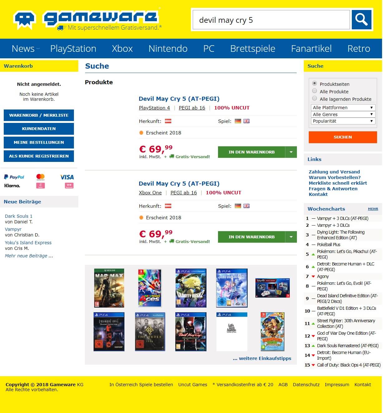 Das kann man vielleicht noch als Hirngespinste und Pseudo-Gerüchte abtun, doch seit kurzem listet der österreichische Gameshändler GAMEWARE Devil May Cry 5 für die PS4 und Xbox One.