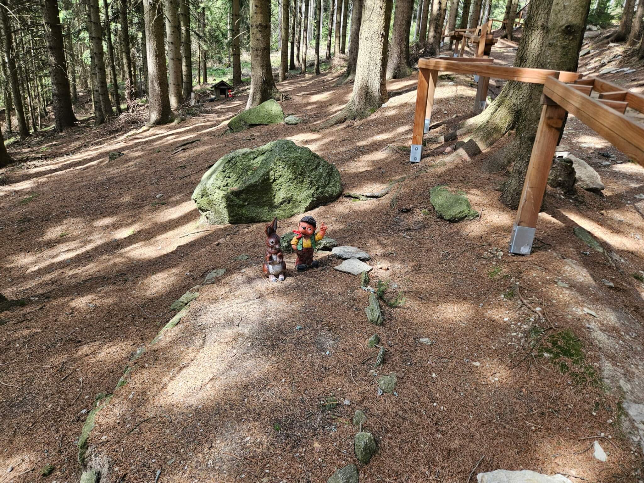 Eigentlich hatte ich keine allzu hohen Erwartungen, aber dieser Wald war für uns und unsere Kinder ein absolutes Highlight. Für Eltern, die ihre Kinder sonst vielleicht zum Wandern überreden müssen, ist dieser Ort ein wahrer Segen: Überall im Wald verstecken sich Zwerge und kleine Märchenfiguren, die nur darauf warten, von den kleinen Entdeckern gefunden zu werden. Diese spielerische Schatzsuche ist die perfekte Motivation – statt müder Beine gab es bei uns nur begeisterte Rufe, wenn die nächste Figur im Unterholz entdeckt wurde. Der Wald selbst ist dabei unglaublich gepflegt und wunderschön angelegt. Es ist dieser ganz besondere, würzige Duft nach Nadelbäumen, der einen sofort tief durchatmen lässt und den Alltag in weite Ferne rückt.