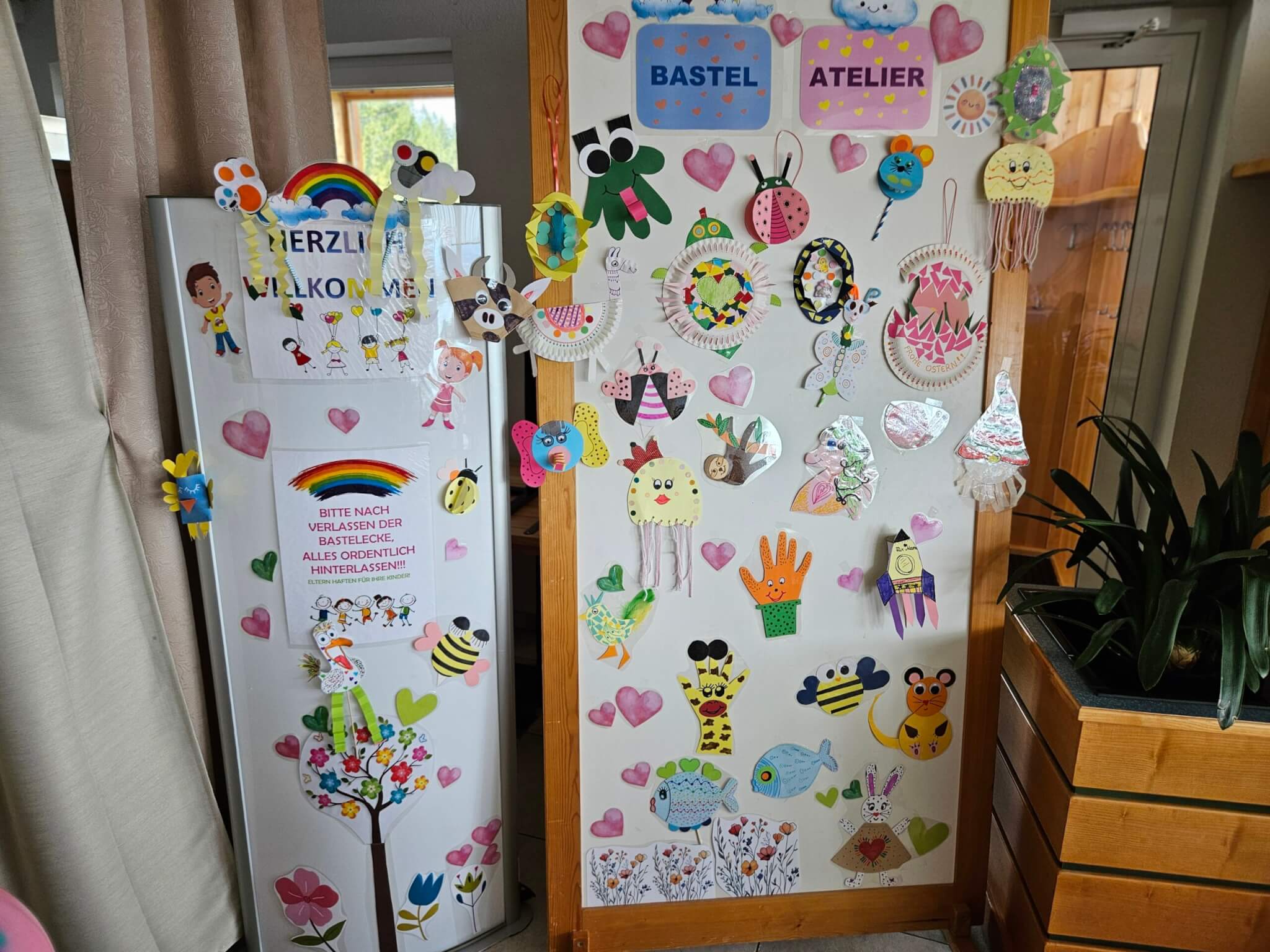 Aber wie bereits erwähnt hatten wir für all das noch keine Zeit, denn wir waren im Wellnessbereich (dazu die Tage mehr) und durften an einer Bastelstunde teilnehmen. Zwei bis drei Mal am Tag, gibt es eine einstündige Bastelstunde für die Kinder. Heute gab es unter anderem Giraffen, Einhörner und Marienkäferchen zu basteln. Morgen vor dem Mittagessen werden sogar Stoffbeutel bemalt. Mein Sohn hat sich für den Käfer entschieden, der in der Spielecke gemacht wird, wo die Kinder nach dem Essen hinschauen dürfen und die Eltern ungestört ihr Essen fertig essen können. Unter geduldiger und sehr netter Anleitung war der süße Käfer bald fertig gebastelt. Man merkt auch hier wieder, dass man sich sehr viel Zeit für die Kleinen nimmt und mit viel Fantasie und Kreativität die Kinder bestens unterhält.